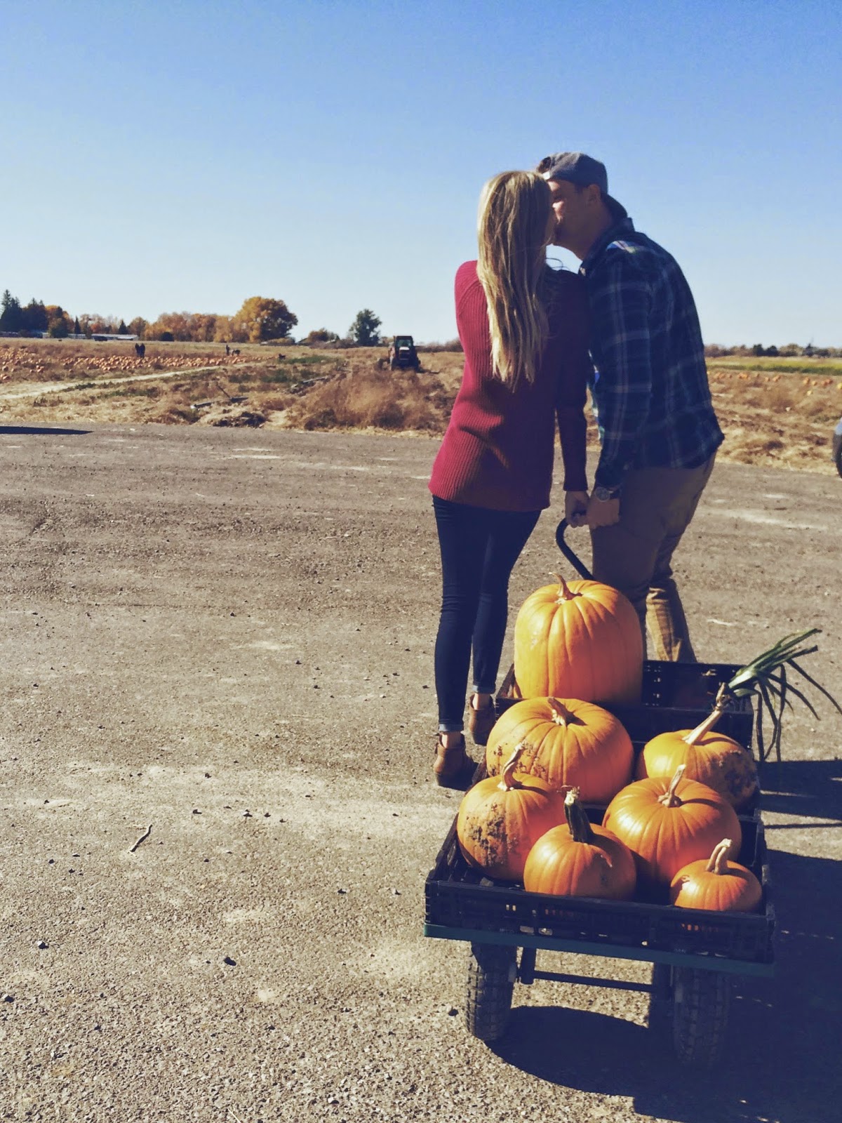 We pulled up to the tiny farm with fresh doughnuts in our bellies and ready to step out into the wonderfully crisp, yet warm, October air. It might not have had all the Fall glam I was used to but it was the perfect Idaho Fall outing. We seriously could have spent hours (well we actually did) just roaming up and down the rows grabbing pumpkin after pumpkin... we seriously had arms full