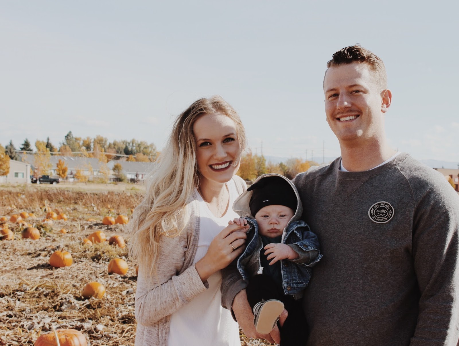 I am definitely a pumpkin patch type of girl...none of this buy a pumpkin at the store nonsense! Especially now that I have a babe of my own, I think it is important to get these family traditions started young. So our Henry got his first pumpkin patch experience...and despite the wind I think he enjoyed himself (as much as a 2 month old can).